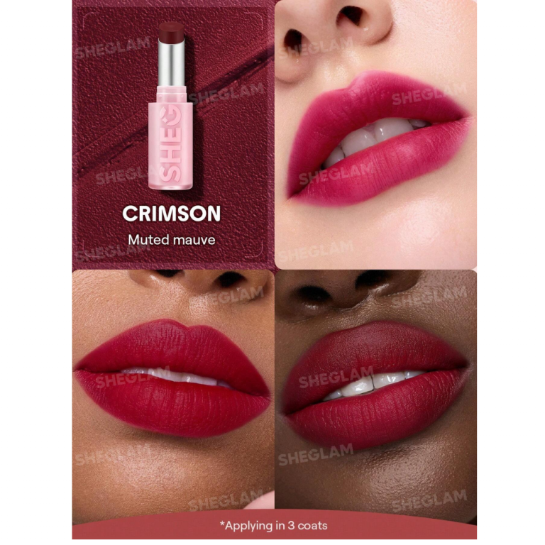 SHEGLAM Starlight Velvet Lipstick – Beach Babe| Matte rouge pink with a gold finish