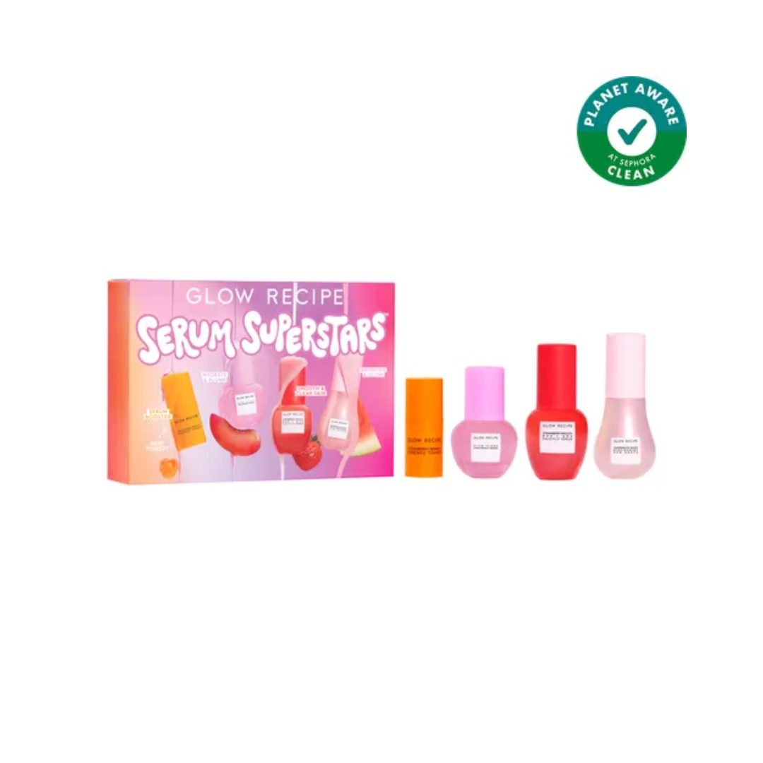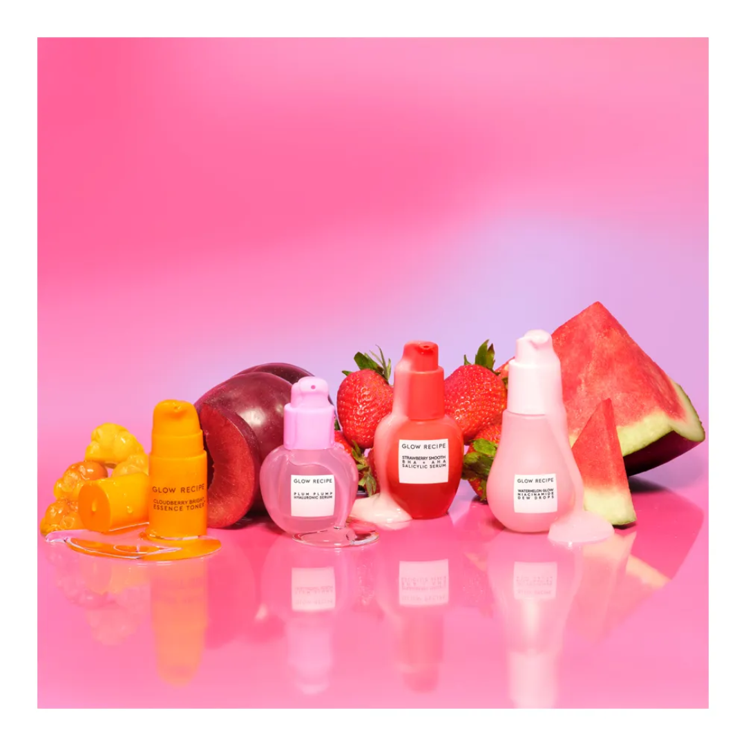 Choose your serum based on your skin’s daily needs! Plum serum hydrates & plumps skin, strawberry serum helps smooth texture & treat blemishes, and dew drops delivers an instant dewy glow while brightening over time.