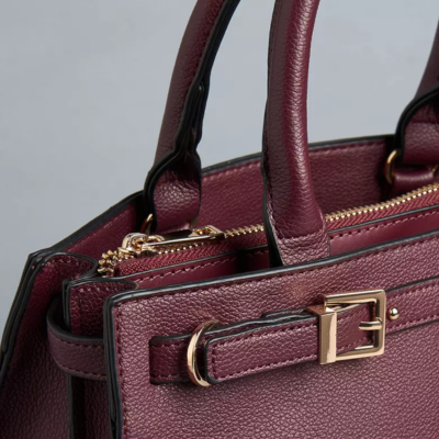 Step out in style with this tote bag. This chic tote features a sleek design with striking buckle detail on the front, adding a touch of elegance to your look. The double handles provide a comfortable grip, while the zip closure ensures your belongings are secure. Inside, you’ll find ample space for all your essentials, making it perfect for everyday use. Whether you’re heading to work, running errands, or enjoying a day out, this tote bag combines functionality with a fashionable flair.