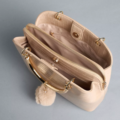 This textured tote bag features a spacious main compartment with a zip closure, perfect for keeping your belongings secure. It has sturdy top handles and a detachable strap, allowing you to carry it as a shoulder bag or crossbody. The stylish texture adds a sophisticated touch to any outfit.