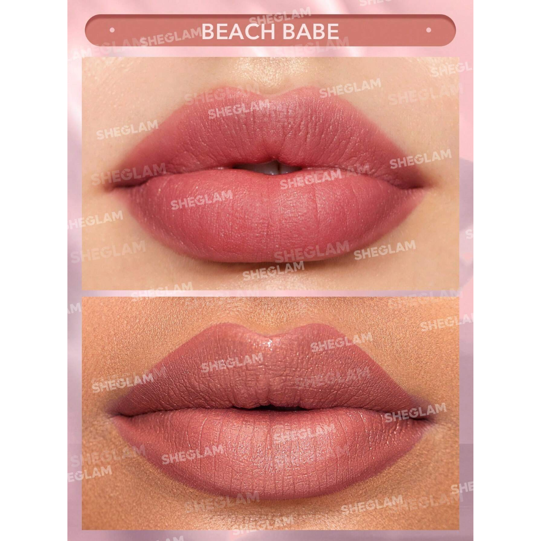 SHEGLAM Starlight Velvet Lipstick – Beach Babe| Matte rouge pink with a gold finish
